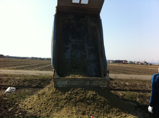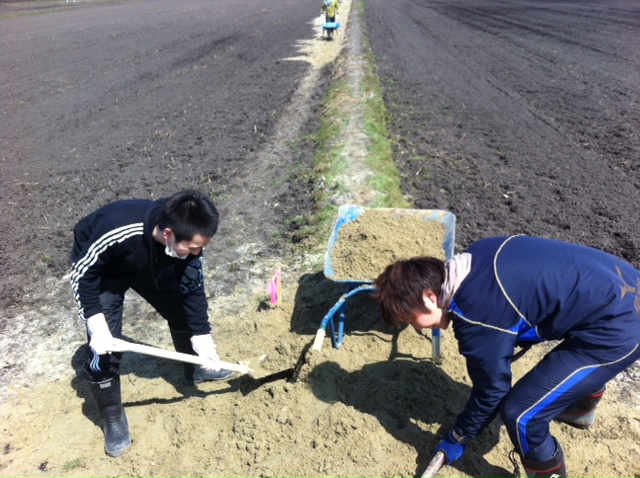現場の田んぼは津波の影響で低くなってしまっている所がありました。