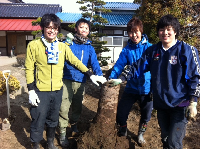 それで午後からの僕のチームは5人で庭木の根っこ抜きです。