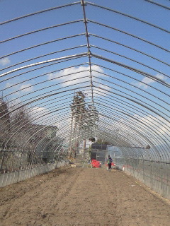写真は、作業が終わり骨組みだけになったハウスです。