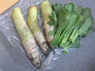 さらにもう一つ。活動先の農家の方から大根と小松菜をいただきました!