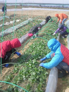 今日は農作業のお手伝いということで、小松菜畑の雑草抜きを行いました。