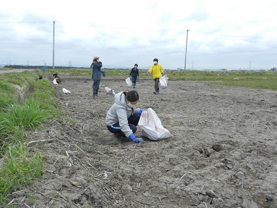 ②でも、今日は別の農家からの田んぼのガレキ拾いの依頼があって