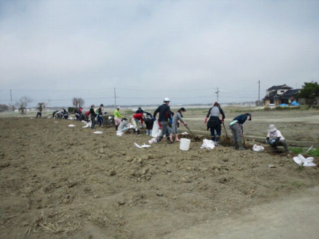 「二木」という地区で畑の中のガレキ拾いを行いました