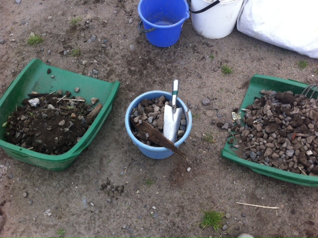 ガレキ拾いではものすごく小石が出てきてなかなか前に進めません。