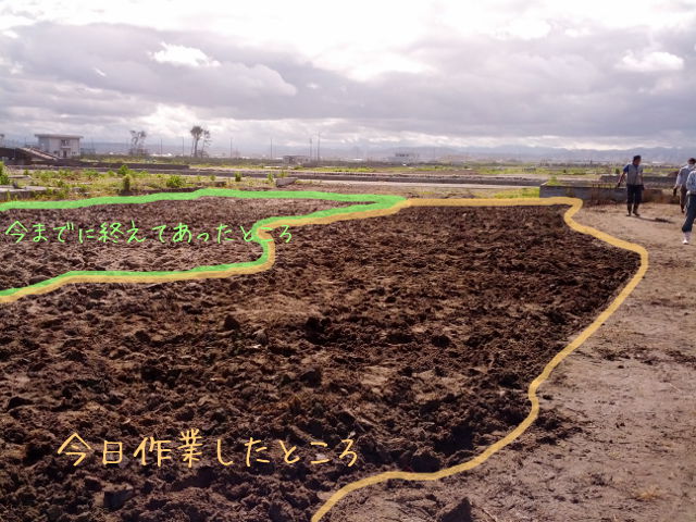 荒浜小の清掃が予定よりも早く終わったので、ちかくの畑へ。