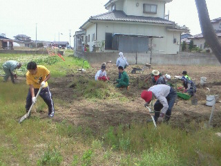 昨日で草刈りが完了したので、今日は3枚目の畑の土おこしを一般ボランティアの方5名で行ないました。