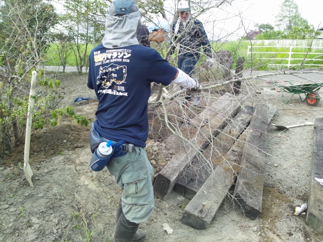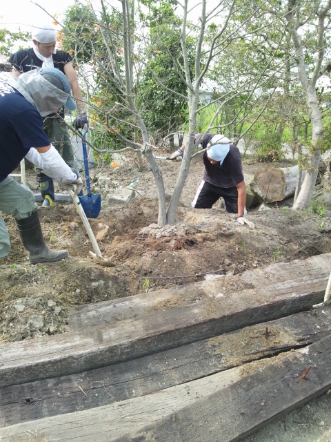 そこで、枯れた植木を根っこから掘り出す作業を行いました。