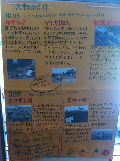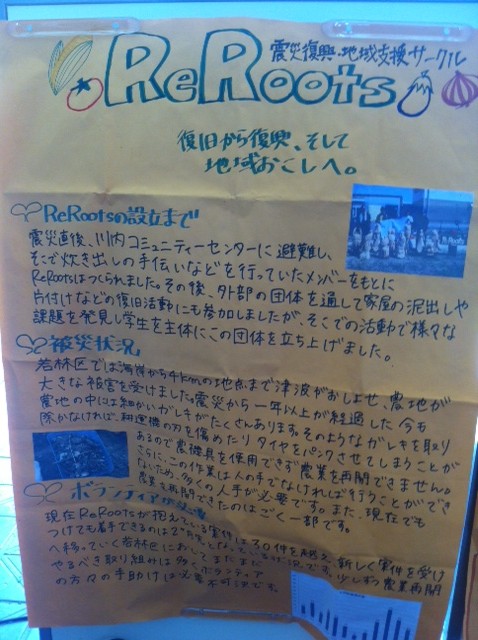 ReRootsは、東日本大震災による津波被災地の復旧から復興、更には地域おこしにむけて、仙台市若林区のボランティアハウスを拠点に活動する団体です。