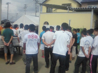 前日まで石巻の高校と合同で合宿を行っていて、その後、被災地でボランティア活動を体験し被災地の現状を知りたい、とのことでした。