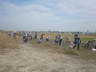 広島修道大学さんと東京経済大学さんと一緒でしたが、合わせて60人近くでの作業でした。