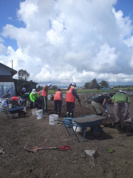 そしてもう1軒のお宅では前日に引き続き、畑のガレキ撤去と土起こしをしました。