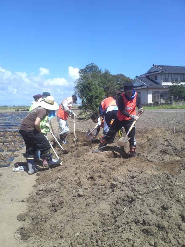続いては同じ畑の別のところで作業中の武蔵野大学の学生さんたちです。