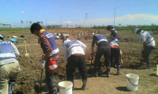 しかしながら、日中はまぶしい日差しの中、フレッシュな東京経済大学のみなさんと、畑の土おこしをしました。