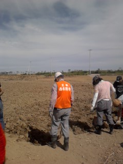今日は荒浜地区という若林区でも海に近い地域の畑で土をおこし、畑のガレキ除去作業を行いました